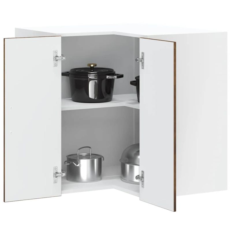 Този кухненски стенен ъглов шкаф е предназначен да оптимизира кухненското пространство и да украси дома ви! Стабилен и издръжлив материал: Инженерната дървесина е издръжлив и стабилен материал с гладка повърхност, която е устойчива на влага, изкривяване и разцепване, което я прави надежден избор за различни проекти.Голямо пространство за съхранение: Ъгловият кухненски шкаф предлага достатъчно място за съхранение на купи, чинии, тенджери и други кухненски уреди.Конструкция за монтиране на стена: Кухненският шкаф може да се монтира на стената, за да се добави допълнително място за съхранение. По този начин можете да увеличите максимално пространството и да запазите чистотата на помещението.Практични врати: Вратата помага за поддържането на чисто и организирано пространство, като скрива кухненските уреди и разхвърляните вещи зад тях.Лесна поддръжка: Благодарение на гладката си повърхност този шкаф се почиства лесно с влажна кърпа и изисква по-малко поддръжка. Добре е да се знае:Винт(ове) и щепсел(и) за вътрешността на стената не са включени. Търсете и използвайте винт(ове) и дюбел(и), подходящи за вашите стени. Ако не сте сигурни, потърсете професионална помощ. Прочетете и следвайте внимателно всяка стъпка от инструкциите.