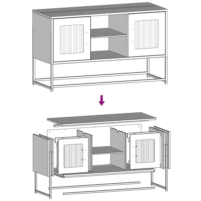 Този ТВ шкаф с достатъчно място за съхранение е практично и атрактивно допълнение към вашата всекидневна или спалня. Здрави и стабилни материали: Студено валцуваната стомана е вид нисковъглеродна стомана, която се произвежда с помощта на процеса на студено валцуване "" и се обработва при близки до нормалните стайни температури.Голямо пространство за съхранение: Тази поставка за телевизор осигурява достатъчно място за съхранение, за да държите списанията, книгите, DVD дисковете и мултимедийните устройства добре подредени и на една ръка разстояние.Две възможности за сглобяване: Страничните панели на телевизионната пейка могат да се поставят от лявата или от дясната страна в зависимост от вашите нужди.Практични врати: Вратата помага за поддържането на чисто и организирано пространство, като прикрива дребните неща и безпорядъка зад тях.Метални дръжки: Този шкаф за мултимедии е оборудван с метални дръжки за лесен достъп и за добавяне на стилен индустриален стил към неговия дизайн. Внимание:За да предотвратите преобръщане, този продукт трябва да се използва с предоставеното устройство за закрепване на стена.