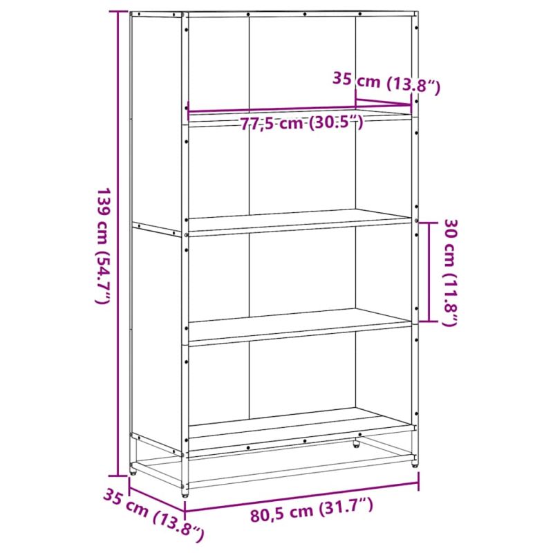 Библиотека, дъб сонома, 80,5x35x139 см, инженерно дърво