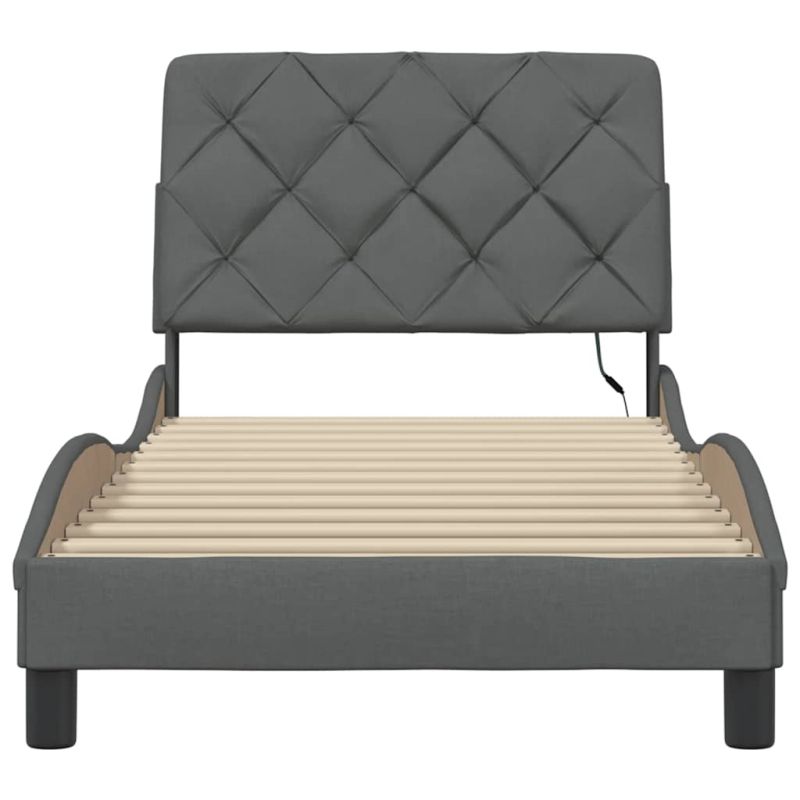 Осигурете си по-добър спокоен нощен сън с тази рамка за легло с LED осветление! То представлява приветливо допълнение към всяка спалня. Мек и издръжлив материал: Полиестерната тъкан предлага комбинация от мекота, дишане и издръжливост, гарантирайки ви да изпитате максимален комфорт и уют.Ламели за оптимална опора: Тази рамка за легло е пълна с ламели, за да предложи нужните опора и дишане за вашия матрак.Гъвкава табла: Тази рамка за легло се предлага с табла, която осигурява отлична опора за гърба, когато седите в леглото, за да четете или гледате телевизия, като същевременно служи и като декоративен елемент.LED светлини за приятна атмосфера: Това легло разполага с LED светлини, които могат лесно да се регулират, за да се създаде персонализирано светлинно шоу. Можете да персонализирате режимите, цветовете и яркостта, за да подобрите атмосферата на вашето вътрешно пространство.Вълнообразен страничен дизайн: Вълнообразният дизайн на рамката на леглото е стилен и изискан, добавя модерен и елегантен щрих към вашия декор, превръщайки го във фокусна точка на вашата спалня. Добре е да се знае:Към това легло не е включен матрак. Ние предлагаме разнообразна селекция от матраци. Можете да проверите нашия магазин за подходящ матрак.Продуктът има USB конектор, който изисква сертифициран 5V USB захранващ източник (не е включен).
