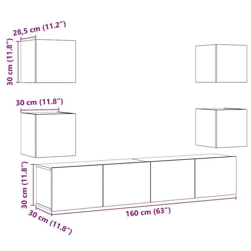 Комплект ТВ шкафове за стенен монтаж 6 части, инженерно дърво