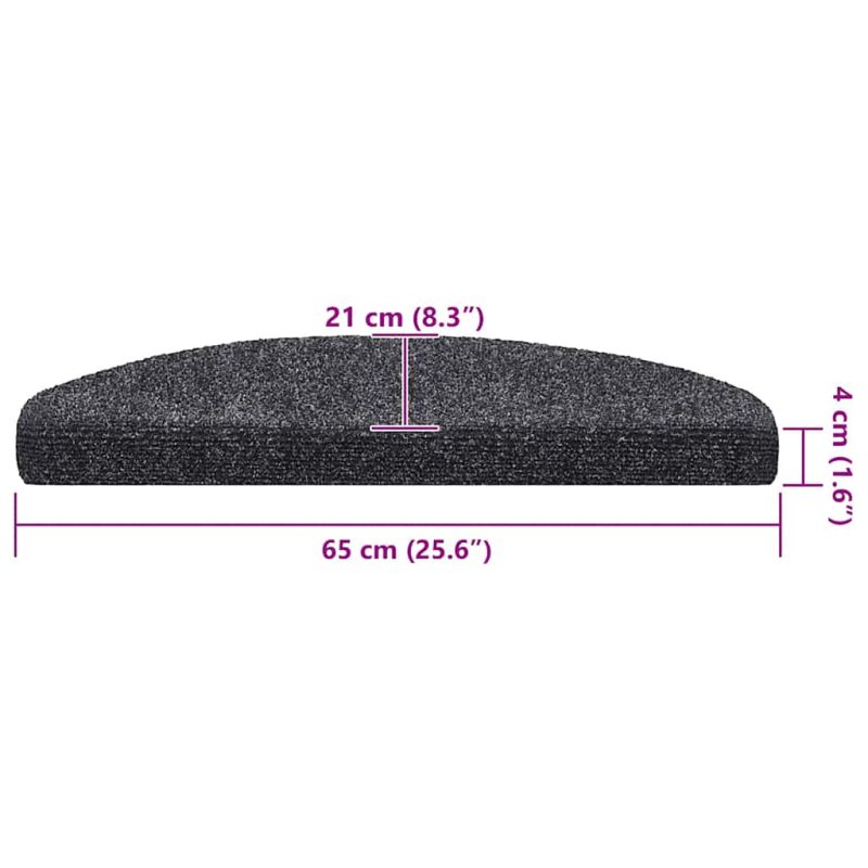 Самозалепващи се постелки за стълби, 20 бр., 65x21x4 см, тъмносиви, полукръгли, големи