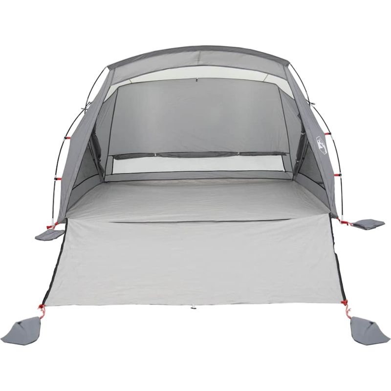Тази плажна палатка предлага на вас и вашите приятели уютен подслон през горещото лято или я използвайте като сянка над пясъчника и басейна за игри. Водоустойчива: Тази палатка за къмпинг, изработена от полиестер с PU покритие, е водоустойчива и устойчива на вятър.Пясъчни възглавници и колчета за допълнителна стабилност: Плажната палатка има пясъчна възглавница във всеки ъгъл за повишена стабилност. Осигурени са и допълнителни колчета за закрепване на палатката и предпазване от издухване.Бъдете на хладно с максимален въздушен поток: Тази палатка има мрежести странични стени, които осигуряват добра вентилация, за да поддържат вътрешността хладна и удобна.Отворена врата: Напълно отворената врата ви позволява да се насладите на красивия плажен пейзаж със семейството си или да забавлявате децата свободно в един приятен летен следобед.Лесно поставяне и сваляне: Поставянето и свалянето на палатката е лесно благодарение на изключително гъвкавите и леки стълбове от фибростъкло и удобната система за свързване с щифт и пръстен. Внимание:Дръжте всички източници на пламък и топлина далеч от плата на този продукт. GPSR