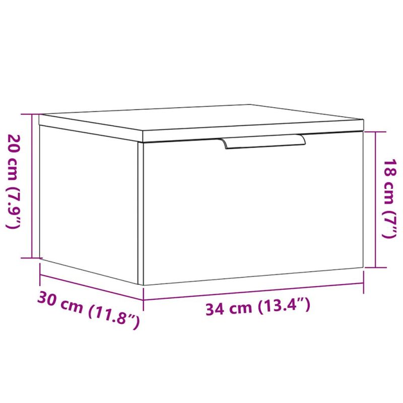 Това нощно шкафче за стенен монтаж е идеалното решение за вашето жилищно пространство, за да увеличите максимално пространството и да поддържате подовите площи чисти. Стабилен и издръжлив материал: Инженерната дървесина е издръжлив и стабилен материал с гладка повърхност, която е устойчива на влага, изкривяване и разцепване, което я прави надежден избор за различни проекти.Дизайн за монтиране на стена: Плаващото нощно шкафче може да бъде монтирано на стена, за да добави допълнително място за съхранение. По този начин можете да увеличите максимално пространството на пода и да поддържате чистота.Голямо пространство за съхранение: Плаващото нощно шкафче осигурява достатъчно място за съхранение на списания, книги, чаши и други неща, които са необходими за спане, като ги държи подредени и на една ръка разстояние.Здрава горна част: Стабилният плот на нощния шкаф е идеален за поставяне на настолни лампи, будилници, книги, рамки за снимки, малки саксийни растения, декорации или други неща от първа необходимост.Лесна поддръжка: Благодарение на гладката си повърхност стенното нощно шкафче се почиства лесно с влажна кърпа и изисква по-малко поддръжка. Добре е да се знае:Винтовете и дюбелите за вътрешната стена не са включени. Съветваме ви да намерите и използвате винтове и дюбели, подходящи специално за вашите стени. Ако не сте сигурни, можете да се консултирате с професионалист. Моля, прочетете и следвайте всяка стъпка от инструкциите.