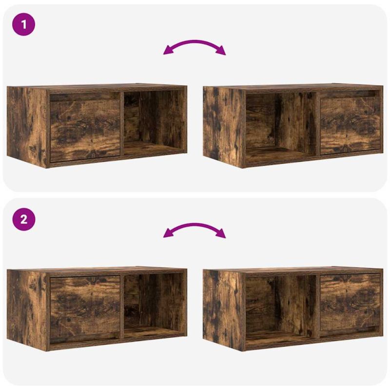 Този ТВ стенен шкаф е идеалното решение за вашето жилищно пространство, за да увеличите максимално пространството и да поддържате подовите площи свободни от безпорядък. Стабилен и издръжлив материал: Инженерната дървесина е издръжлив и стабилен материал с гладка повърхност, която е устойчива на влага, изкривяване и разцепване, което я прави надежден избор за различни проекти.Достатъчно място за съхранение: Тази ТВ пейка осигурява достатъчно място за съхранение на вашите списания, книги, DVD дискове и мултимедийни устройства добре организирани и на достъпно място.Здрав и стабилен плот: Здравият плот е идеален за поставяне на вашия телевизор и стерео уредби или на различни декоративни елементи, като вази или саксийни растения.Спестяващ място дизайн: ТВ шкафът може да се монтира на стената, за да се добави допълнително място за съхранение.Лесна поддръжка: Благодарение на гладката си повърхност HiFi шкафът се почиства лесно с влажна кърпа и изисква по-малко поддръжка.