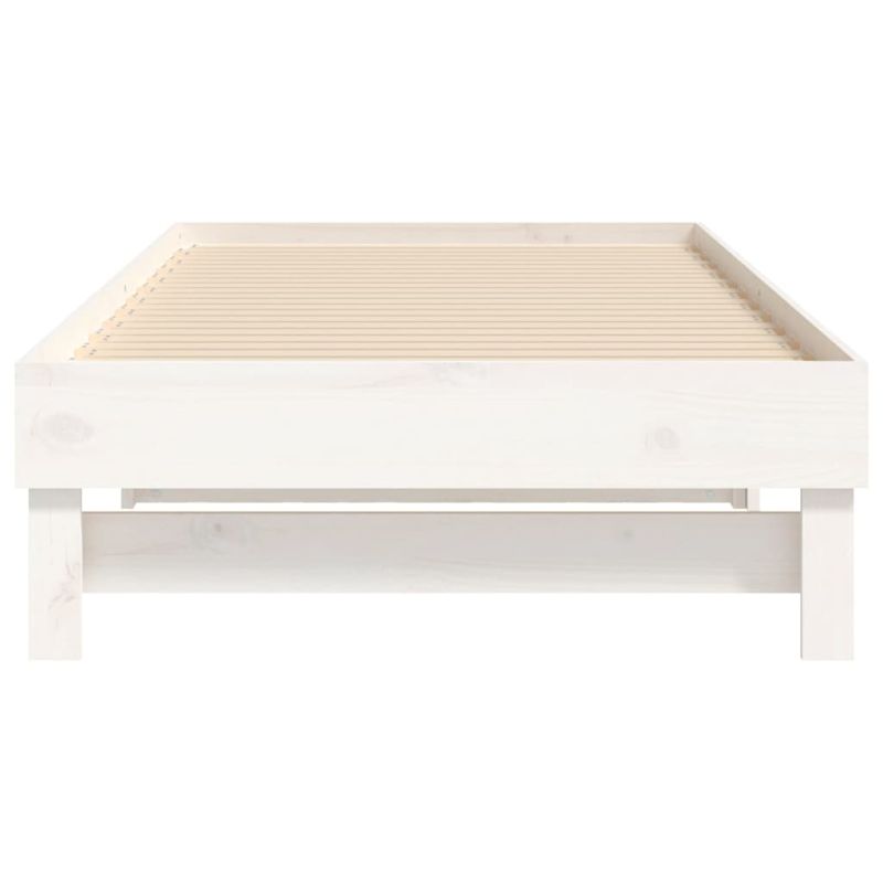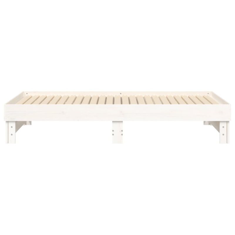 Разтегателна кушетка, бяла, 2x(75x190) см, борово дърво масив