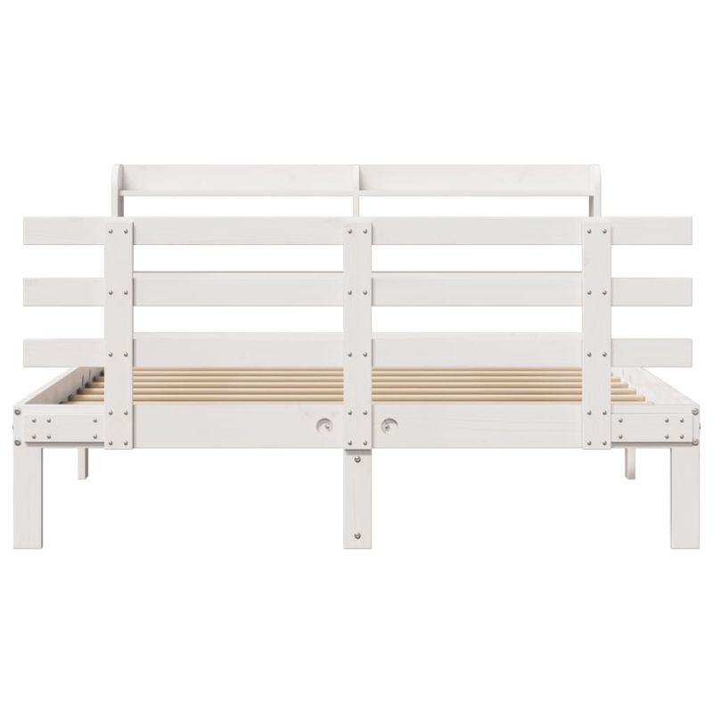 Рамка за легло с табла, бяла, 150x200 см, борово дърво масив