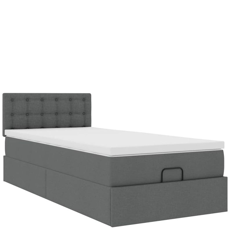 Османска легло с матрак, тъмносиво, 90x200 см, плат