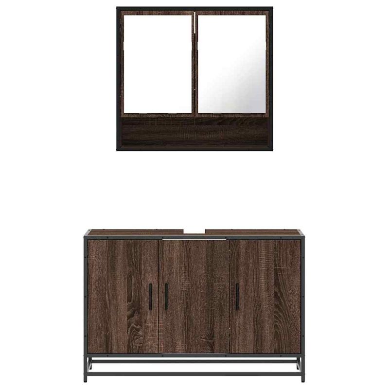 Комплект мебели за баня от 2 части, кафяв дъб, инженерно дърво
