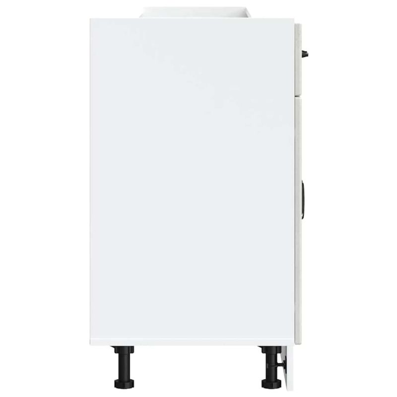 Този кухненски шкаф оптимизира пространството в кухнята ви, като осигурява достатъчно място за съхранение на личните ви вещи! Стабилен и издръжлив материал: Инженерната дървесина е издръжлив и стабилен материал с гладка повърхност, която е устойчива на влага, изкривяване и разцепване, което я прави надежден избор за различни проекти.Голямо пространство за съхранение: Шкафът за мивка предлага достатъчно място за съхранение на чинии, чинии, тенджери и други кухненски уреди.Практични врати: Вратата помага за поддържането на чисто и организирано пространство, като скрива кухненските уреди и разхвърляните вещи зад тях.Регулируеми крачета: Крачетата на този шкаф могат да се регулират по височина, за да отговарят на разположението на кухнята ви.Лесна поддръжка: Благодарение на гладката си повърхност този кухненски шкаф се почиства лесно с влажна кърпа и изисква по-малко поддръжка. Внимание:За да предотвратите преобръщане, този продукт трябва да се използва с предоставеното устройство за закрепване на стена. Добре е да се знае:Винт(ове) и щепсел(и) за вътрешността на стената не са включени. Търсете и използвайте винт(ове) и дюбел(и), подходящи за вашите стени. Ако не сте сигурни, потърсете професионална помощ. Прочетете и следвайте внимателно всяка стъпка от инструкциите.