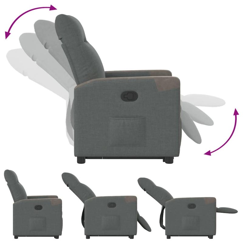 Изправящ реклайнер стол, тъмносив, текстил
