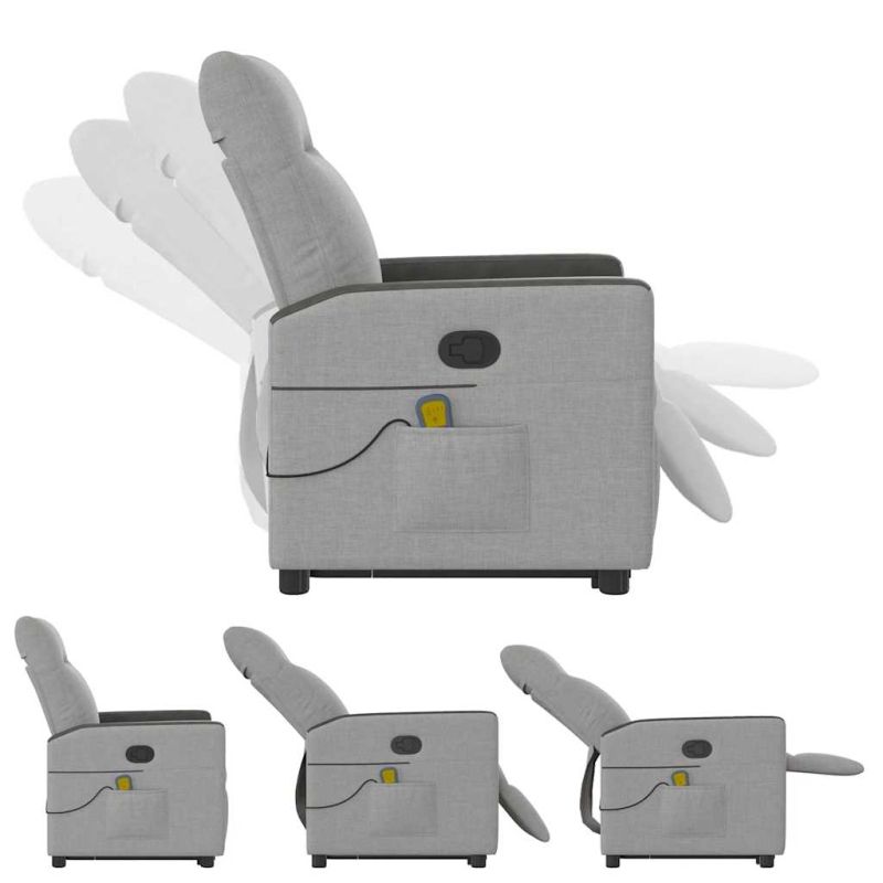 Изправящ масажен реклайнер стол, облачно сив, текстил