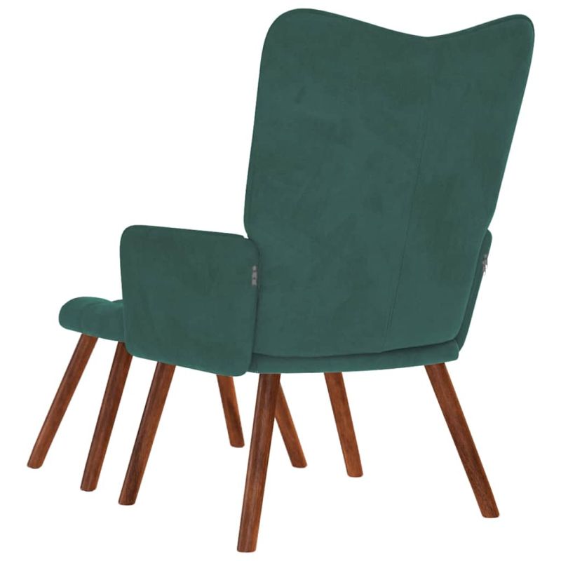 Релаксиращ фотьойл с табуретка, тъмнозелен кадифе