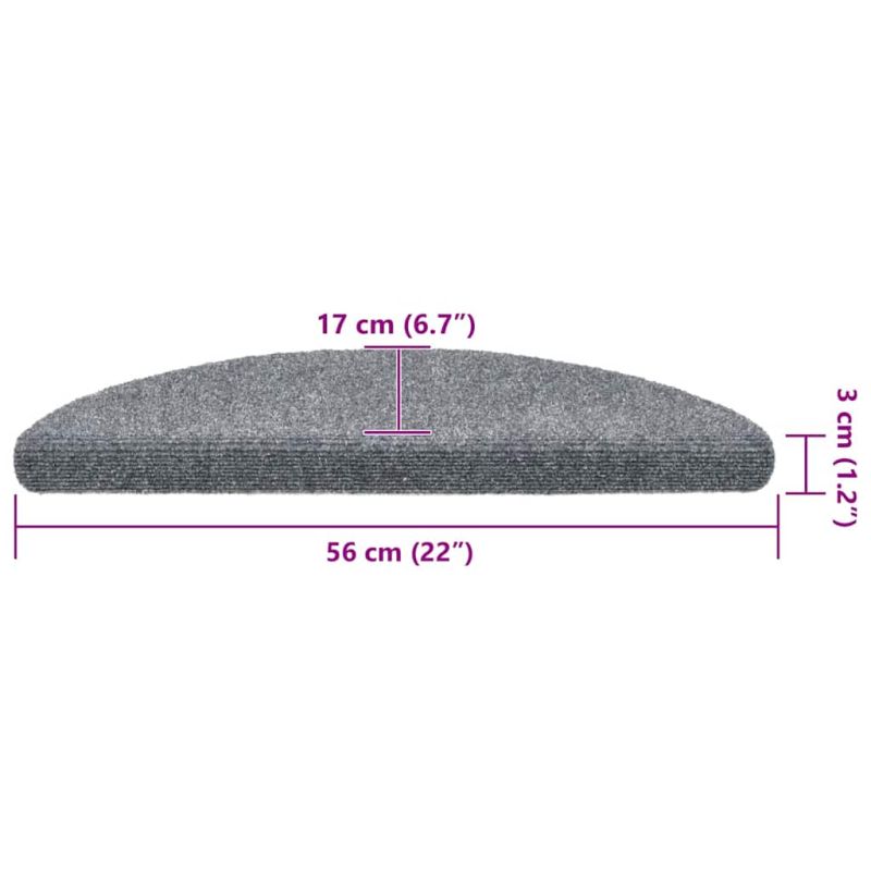 Самозалепващи се постелки за стълби, 30 бр., 56x17x3 см, светлосиви, полукръгли