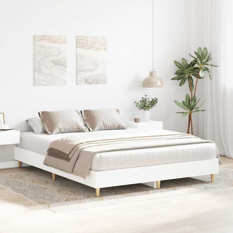 Рамка за легло без матрак, бяла, 150x200 см, масивно дърво