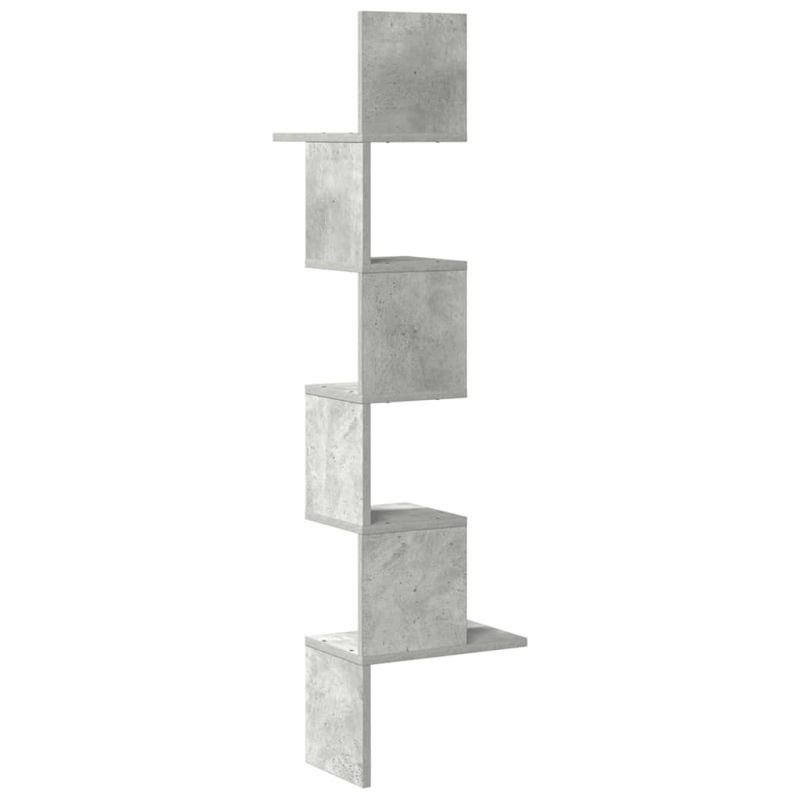 Стенен ъглов рафт, бетонно сив, 32x32x127,5 см, ПДЧ