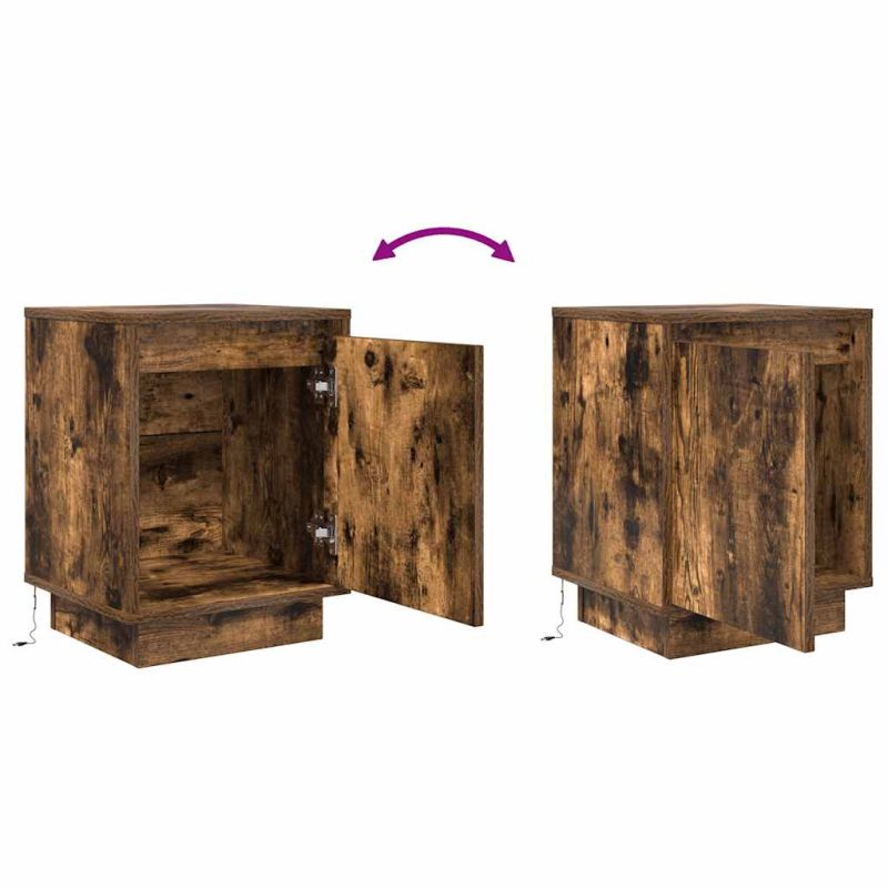 Нощни шкафчета с LED осветление 2 броя опушен дъб 38x34x50 cm