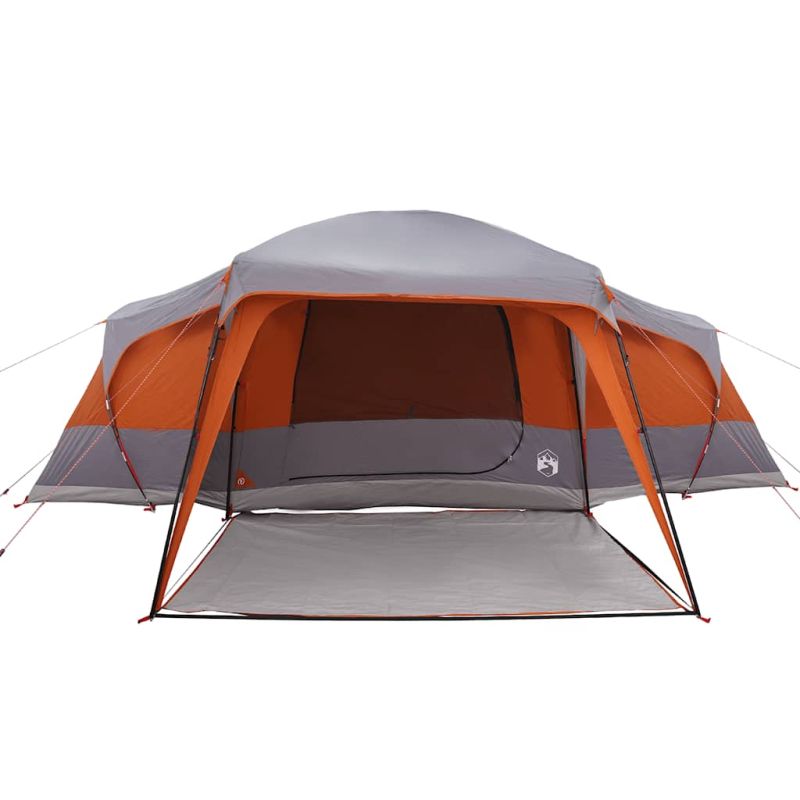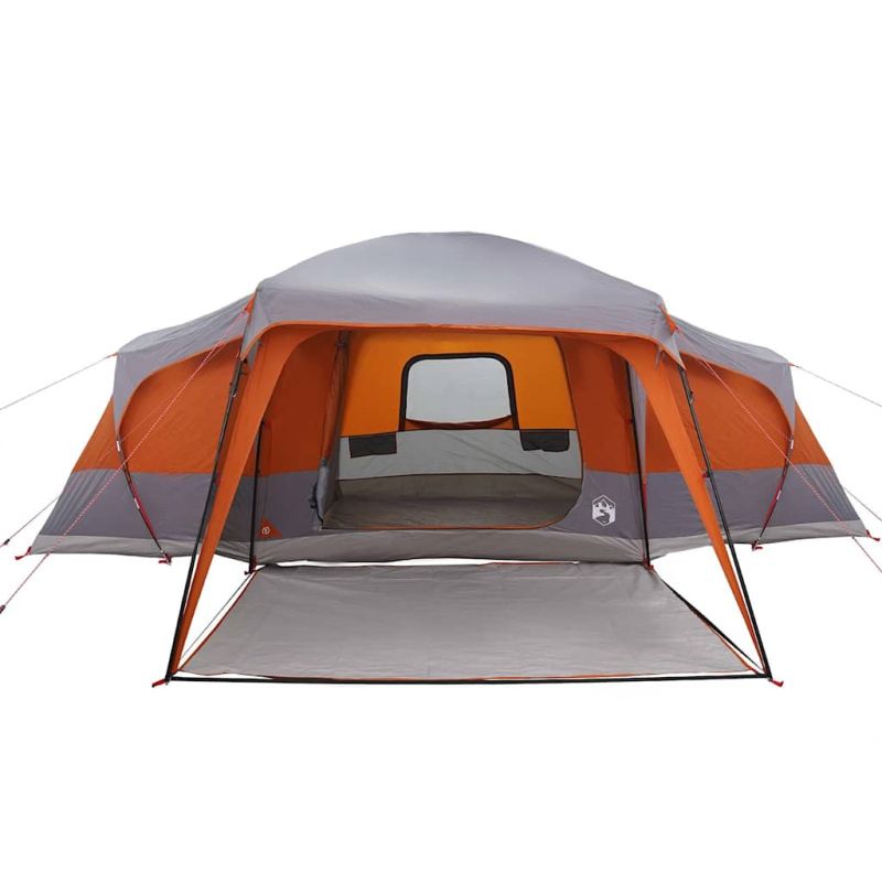 Семейна палатка с куполна веранда за 9 души, сива и оранжева