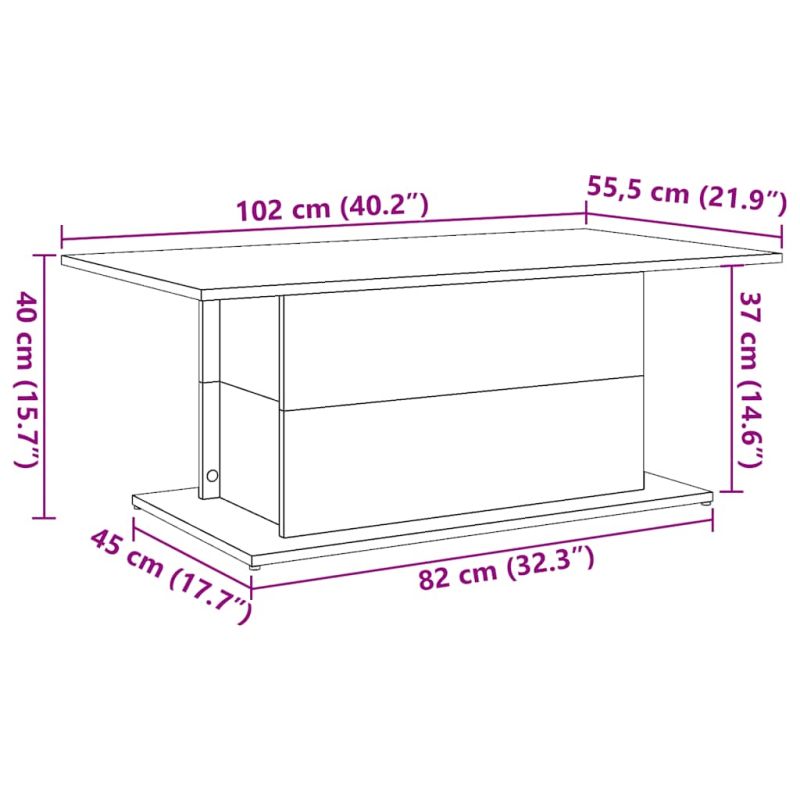 Отпуснете се и се насладете на почивката и забавленията със семейството и приятелите си около тази маса за кафе! Стабилен и издръжлив материал: Инженерната дървесина е издръжлив и стабилен материал с гладка повърхност, която е устойчива на влага, изкривяване и разцепване, което я прави надежден избор за различни проекти.Достатъчно място за съхранение: Тази странична маса осигурява достатъчно място за съхранение на вашите списания, книги, DVD дискове, дистанционно управление и други малки предмети добре организирани и на достъпно място.Стабилен и здрав плот: Здравият плот е идеален за поставяне на вашите напитки или всякакви други нужди, които ви трябват подръка.Лесна за поддръжка: Благодарение на гладката си повърхност, масата за поставяне до диван се почиства лесно с кърпа и изисква по-малко поддръжка.