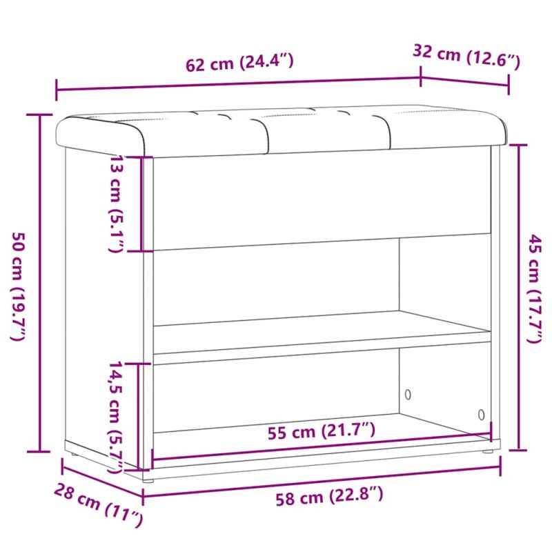 Дръжте обувките си добре организирани и винаги подръка с тази пейка за обувки! Издържлив материал: Инженерната дървесина е с изключително качество с гладка повърхност и се отличава със здравина, стабилност и устойчивост на влага.Достатъчно място за съхранение: Пейката за коридора разполага с голямо място за съхранение, за да поддържате обувките си добре организирани и предлага чиста и свободна от бъркотия всекидневна зона.Удобно сядане: Гъсто подплатената възглавница на седалката осигурява оптимален комфорт за сядане при обуване и събуване.Функционална употреба: Пейката е идеална за използване като пейка за обувки в коридора или пейка за съхранение в хола. Максимално 110 кг на седалка. Съобразете се с риска от открит огън и други източници на силна топлина в близост до продукта. Този продукт се захранва от DC 5V, но сертифицираният USB източник на захранване 5V не е включен в комплекта. По-високото напрежение може да доведе до прегряване на устройството и да доведе до повреда на устройството и потенциален риск от прегряване и пожар.