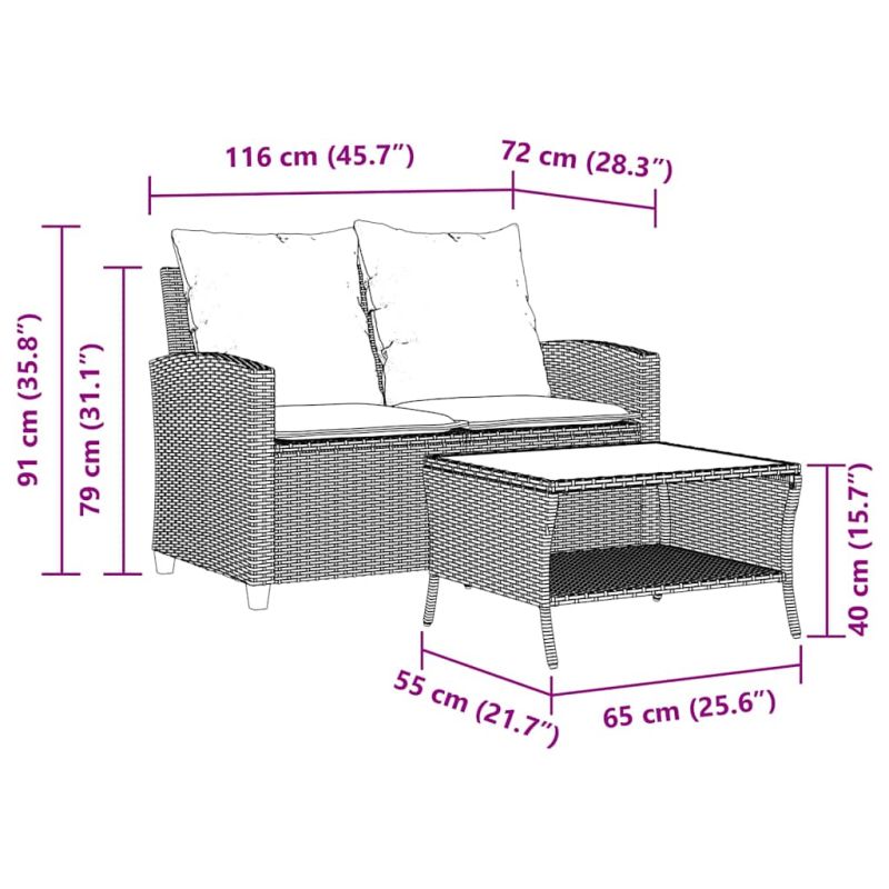 Градински диван с 2 седалки и възглавници&Маса Сив поли ратан