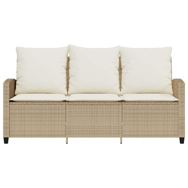 Градински диван с 3 седалки и възглавници&Маса Бежов поли ратан