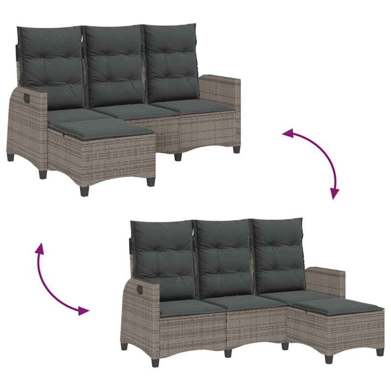 Отпуснете се и се насладете на открито в тази удобна накланяща се градински диван! Издръжлив материал: PE ратан, известен също като полиратан, е здрав синтетичен материал с малко необходима поддръжка, който прилича на естествен ратан. Той е лек, лесен за почистване и често се използва за външни мебели поради своята издръжливост и устойчивост на атмосферни влияния.Регулируема облегалка: Тази мебел за открито има дръжка на всяка седалка. Можете да регулирате облегалката във всяко положение, като издърпате дръжката, и бързо да я върнете в първоначалното ѝ положение.Удобна седалка: Тази мебел за открито, снабдена с плътно подплатени възглавници, предлага удобство при сядане.Калъф, който може да се сваля и може да се пере: Тези възглавници за седалки имат подвижни калъфи за лесно пране и поддръжка. Възглавниците за облегалките имат калъф отзад за лесно закрепване към облегалките.Здрава и стабилна рамка: Стоманената рамка с прахово покритие гарантира, че градинската мебел е здрава и стабилна за ежедневна употреба на открито. Добре е да се знае:За да сте сигурни, че вашите външни мебели ще останат красиви, ви препоръчваме да ги защитите с водоустойчиво покривало.