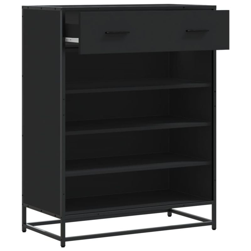 Шкаф за обувки черен Изработена дървесина и метал