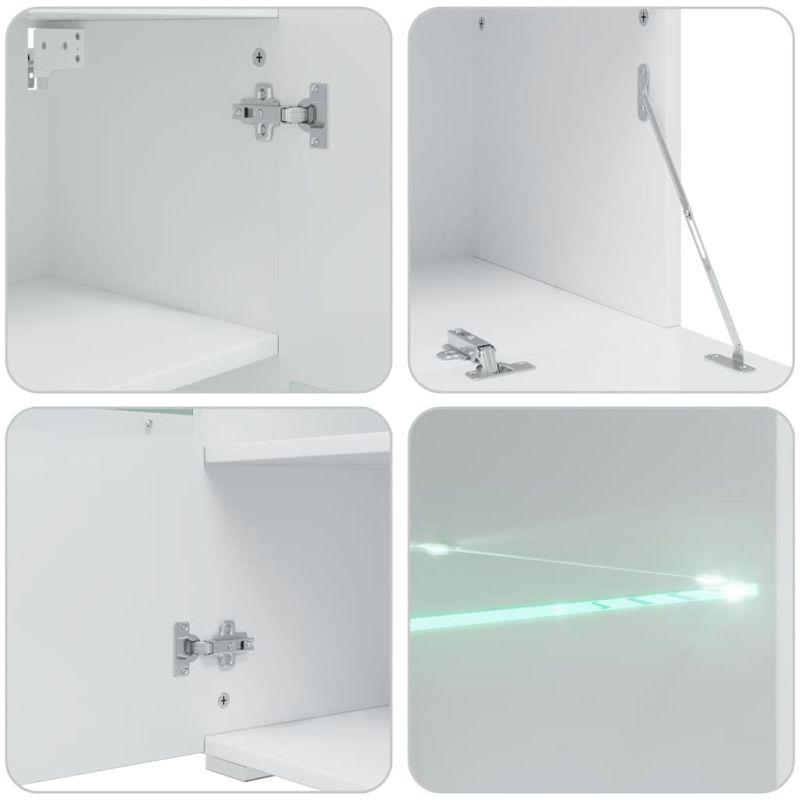 Оптимизирайте пространството във всекидневната си, без да жертвате стила си, с този пълен комплект шкафове за телевизор с място за съхранение! Стабилен и издръжлив материал: Инженерната дървесина е издръжлив и стабилен материал с гладка повърхност, която е устойчива на влага, изкривяване и разцепване, което я прави надежден избор за различни проекти.Голямо пространство за съхранение: Комплектът включва стенен шкаф, стоящ шкаф, два ниски шкафа и стенен рафт. Тя предлага универсално място за съхранение на мултимедийни устройства, книги и по-малки предмети, като същевременно осигурява място за декоративни дисплеи.Модерна естетика: С елегантен, съвременен дизайн с гладки покрития и изтънчени акценти тази колекция подобрява всяко пространство, като безпроблемно се интегрира в широк спектър от стилове на обзавеждане.Усъвършенствана функционалност: Шкафовете за телевизор са с падащи вратички за скрито съхранение. Стенните и стоящите шкафове са с частично остъклени врати и стъклен рафт с енергийно ефективно LED осветление, което придава едновременно практичност и елегантност.Спестяващ място дизайн: Този комплект стенни шкафове ефективно увеличава пространството в дневната, без да жертва стила си, предоставяйки компактно, но функционално решение за модерен живот. Добре е да се знае:Таблата се състои от 2 шкафа. Този уред не е предназначен да бъде използван от лица (включително деца) с намалени физически, сензорни или ментални възможности или липса на опит и знание, освен ако не са под надзор или не са им дадени инструкции относно употребата на уреда от лице, отговорно за тяхната сигурност. Този продукт не е играчка. Не позволявайте на децата да си играят с уреда. Само за употреба на закрито.