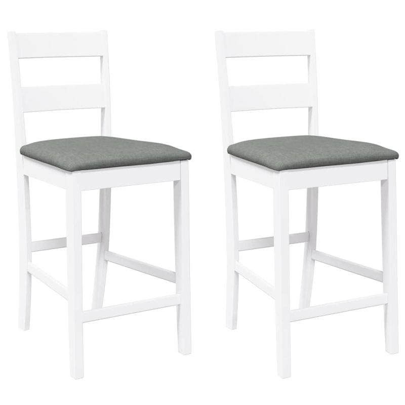 Бар столове с възглавници 2 бр Бяла масивна дървесина Каучук