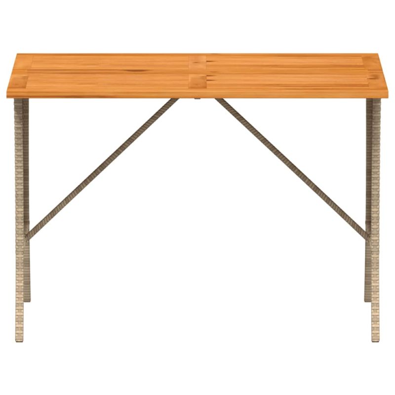Този градински трапезен комплект е чудесен избор за вечеря на открито или просто за почивка в градината, задния двор или във вътрешния двор. Издръжлив материал: PE ратан, известен също като полиратан, е здрав синтетичен материал с малко необходима поддръжка, който прилича на естествен ратан. Той е лек, лесен за почистване и често се използва за външни мебели поради своята издръжливост и устойчивост на атмосферни влияния.Стабилен и лесен за почистване плот: Тази градинска маса има плот от акациево дърво, който е здрав, издръжлив и лесен за почистване с влажна кърпа.Удобна седалка: Тази мебел за открито, снабдена с плътно подплатени възглавници, предлага удобство при сядане.Калъф, който може да се сваля и може да се пере: Тези възглавници за седалки имат подвижни калъфи за лесно пране и поддръжка.Универсална табуретка за крака: Табуретката е универсална и служи като удобна поставка за крака, когато се излежавате на дивана или като допълнителна седалка във вашата градина. Добре е да се знае:За да сте сигурни, че вашите външни мебели ще останат красиви, ви препоръчваме да ги защитите с водоустойчиво покривало.