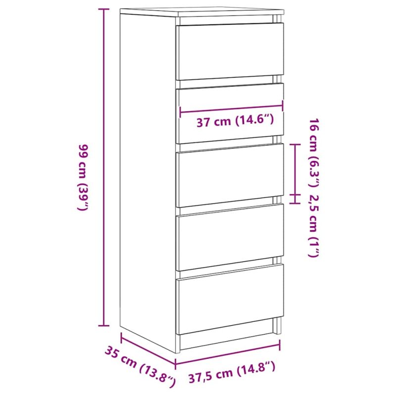 Бюфет с чекмеджета, сив сонома, 37,5x35x99 см, инженерно дърво