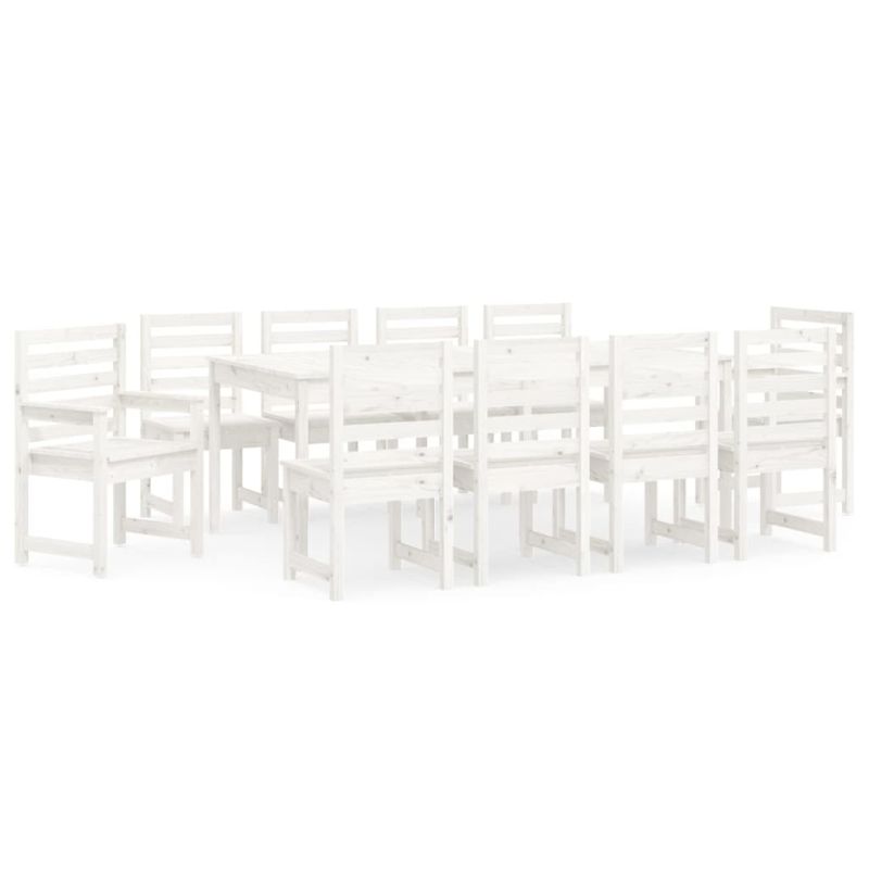 Градински трапезен комплект от 11 части, бял, масивен бор
