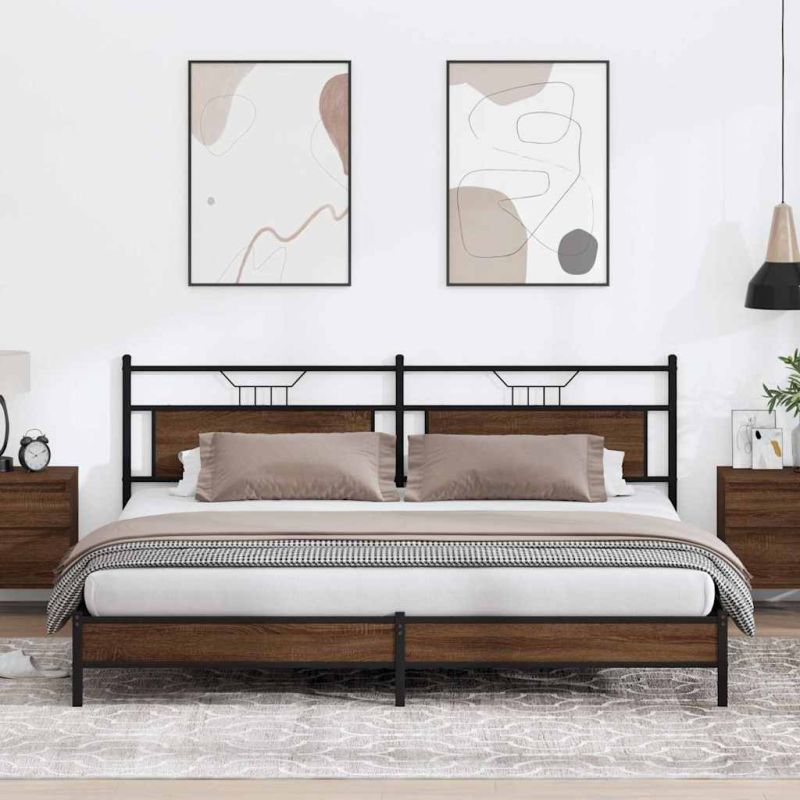 Метална рамка за легло, без матрак, кафяв дъб, 193x201 см
