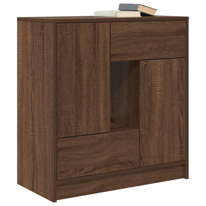 Бюфет с чекмеджета и вратички, кафяв дъб, 70,5x34x74,5 см