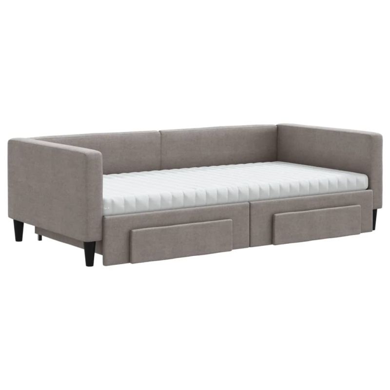 Канапе с изтеглящо легло и чекмеджета таупе 100x200 см плат