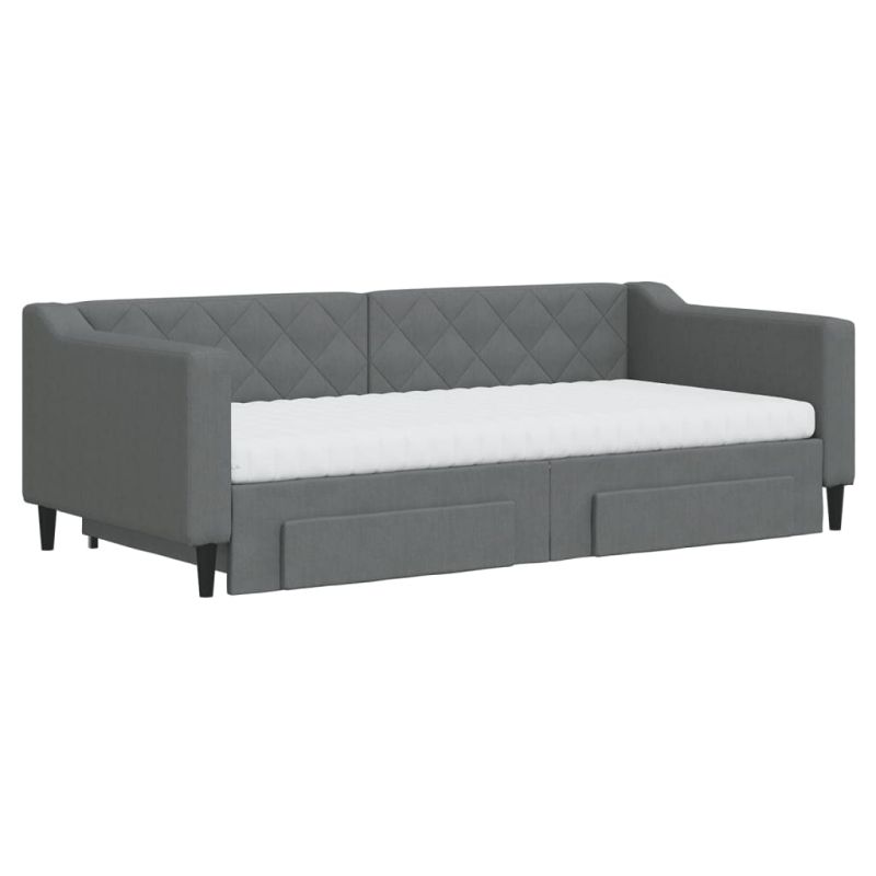 Канапе с изтеглящо легло и чекмеджета тъмносиво 90x190 см плат