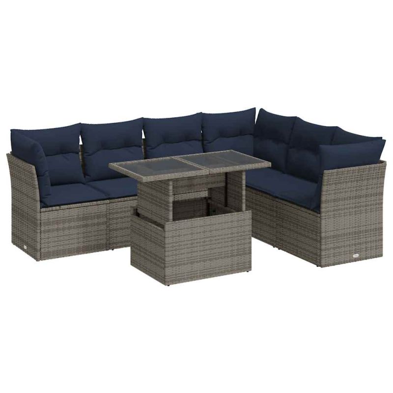 Градински комплект диван с възглавници 7 части черен полиратан