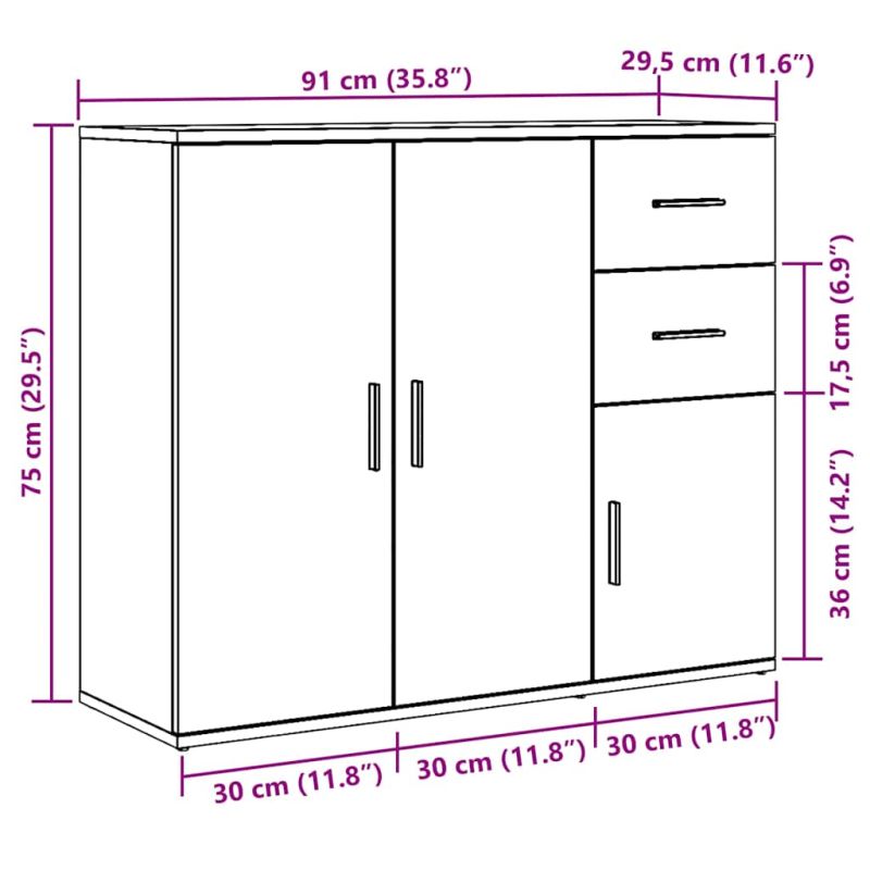 Бюфет, черен дъб, 91x29,5x75 см, инженерно дърво