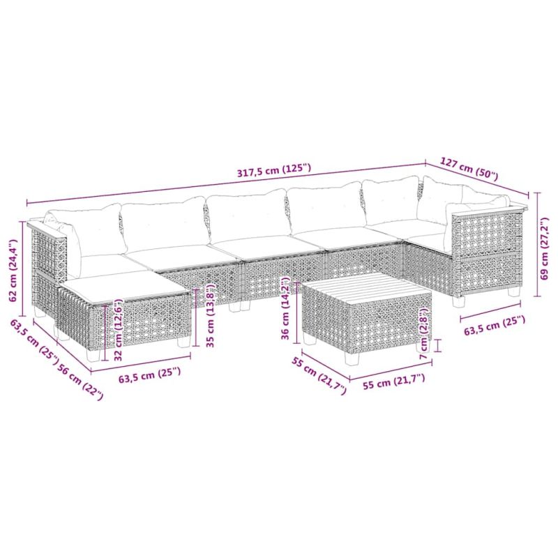 Начало Дом и градина Мебели Външни мебели Комплекти градински мебели Градински диван с възглавници, 8 части, бежов полиратан