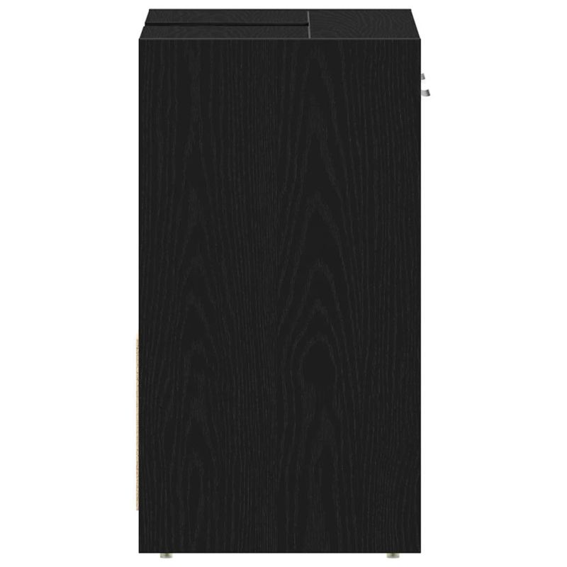 Шкаф за мивка за баня, черно и дъб, 60x33x60см, инженерно дърво