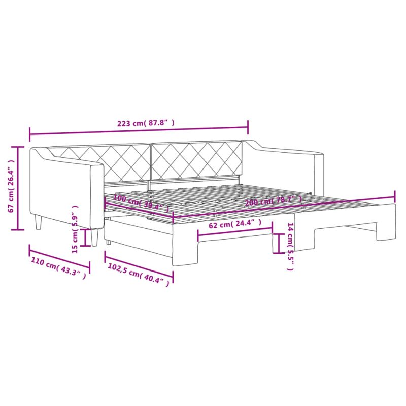 Това канапе 2-в-1 с изтеглящо разтегателно легло, което служи едновременно като диван и легло, е практично и атрактивно допълнение към вашата всекидневна или спалня. Функционална мебел: Канапето функционира като диван през деня и лесно се превръща в двойно легло през нощта чрез издърпване на механизма за изтеглящо разтегателно легло, осигурявайки удобно решение за настаняване на гости и увеличаване на пространството.Издръжлива материя и солидна конструкция: Това канапе има здрава рамка от дърво и метал и е тапицирано с издръжлива и удобна материя.Модерен дизайн: Диванът е с модерен дизайн, който се отличава с изчистени линии, минималистичен вид, и ще добави модерен стил към вашия интериор! Добре е да се знае:Матраците не са включени в това легло. Ние предлагаме разнообразна селекция от матраци. Можете да проверите нашия магазин за подходящи матраци.