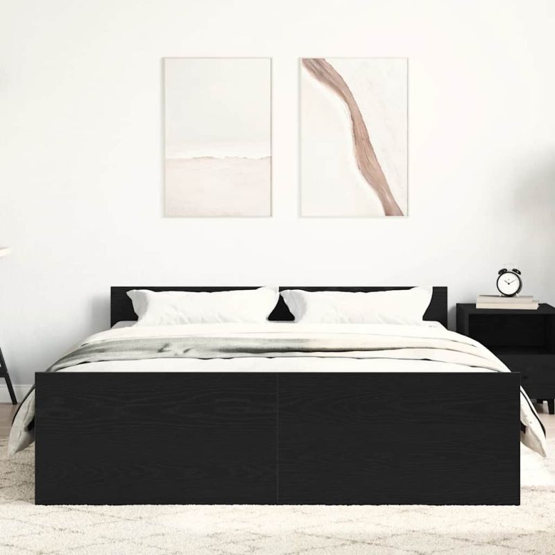 Начало Дом и градина Мебели Легла и аксесоари Легла и рамки за легла Рамка за легло без матрак Черен дъб 135x190 см инженерно дърво