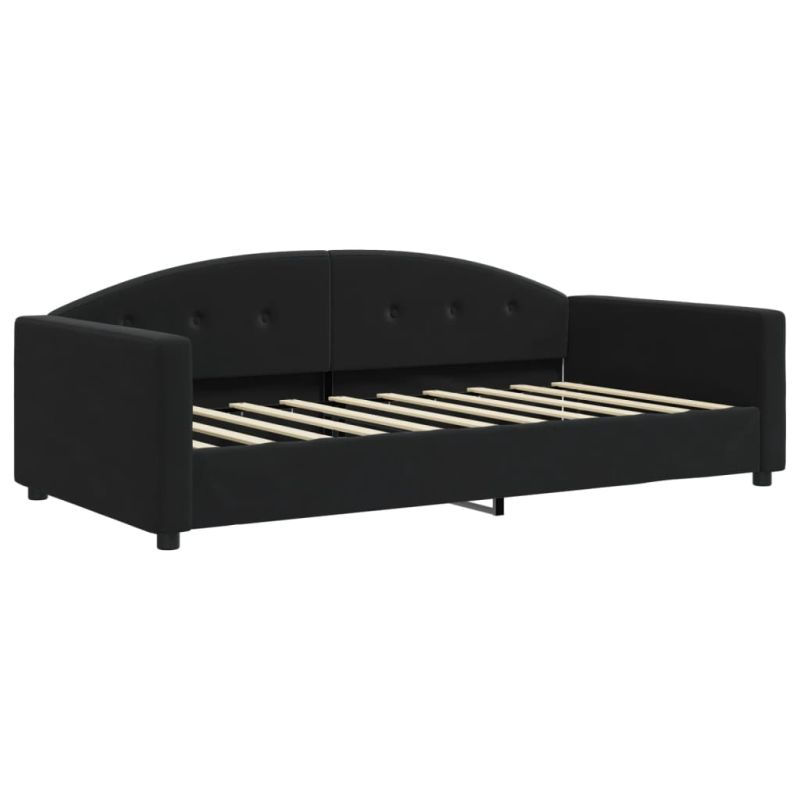 Канапе с изтеглящо легло и чекмеджета черно 90x190 см плат
