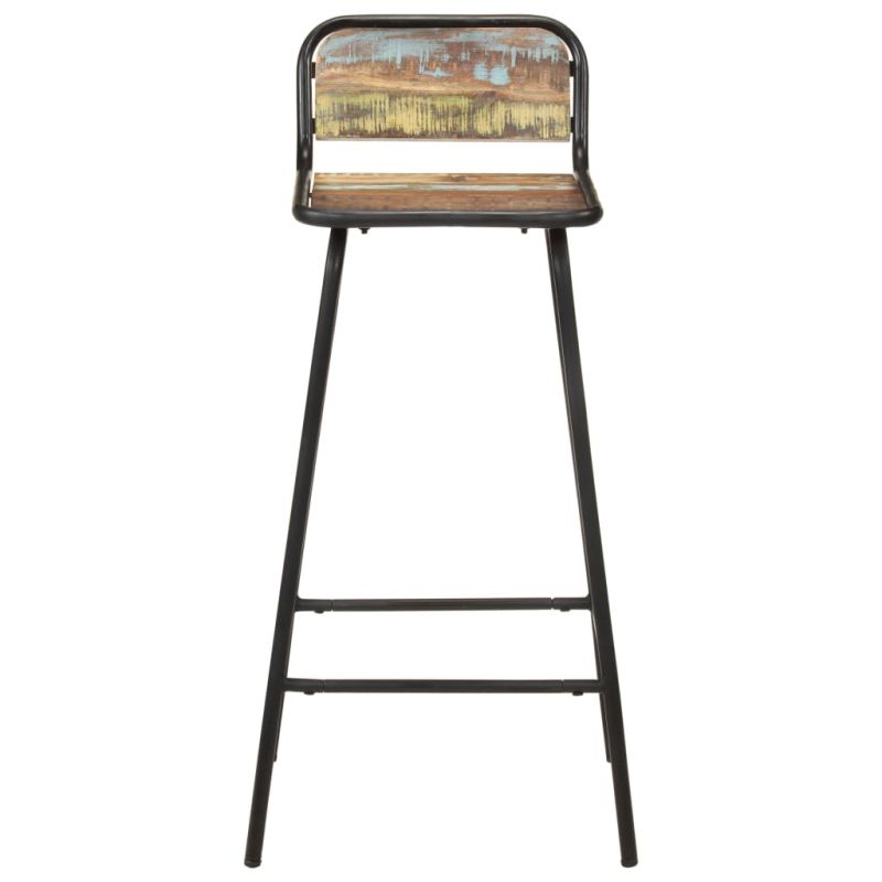 Насладете се на глътка вино, хапнете или просто се отпуснете на тези дървени бар столове с приятелите и семейството си! Тези бар табуретки са изработени от регенерирана дървесина, произведена от греди от подове или подпорни греди от стари сгради, които са били съборени и могат да се състоят от различни видове дървесина като борова дървесина, тик, бук, дъб, кедър, манго, акация и т.н. Това означава, че рециклираната дървесина запазва характеристиките на тези различни видове дървесина. Регенерираната дървесина е вече остаряла, обветрена и изсушена, така че не се свива или огъва. Този стол е изцяло ръчно изработен, а красивите дървесни шарки правят всяка мебел необикновена и малко по-различна от останалите. Стоманената рамка с прахово покритие доставя допълнителна стабилност. Тези пъб столове разполагат и с вградени подложки за крака за допълнителен комфорт при седене. Важна забележка: Цветовете и шарките могат да варират, което прави всяка мебел уникална и малко по-различна от останалите. Доставката е на случаен принцип.