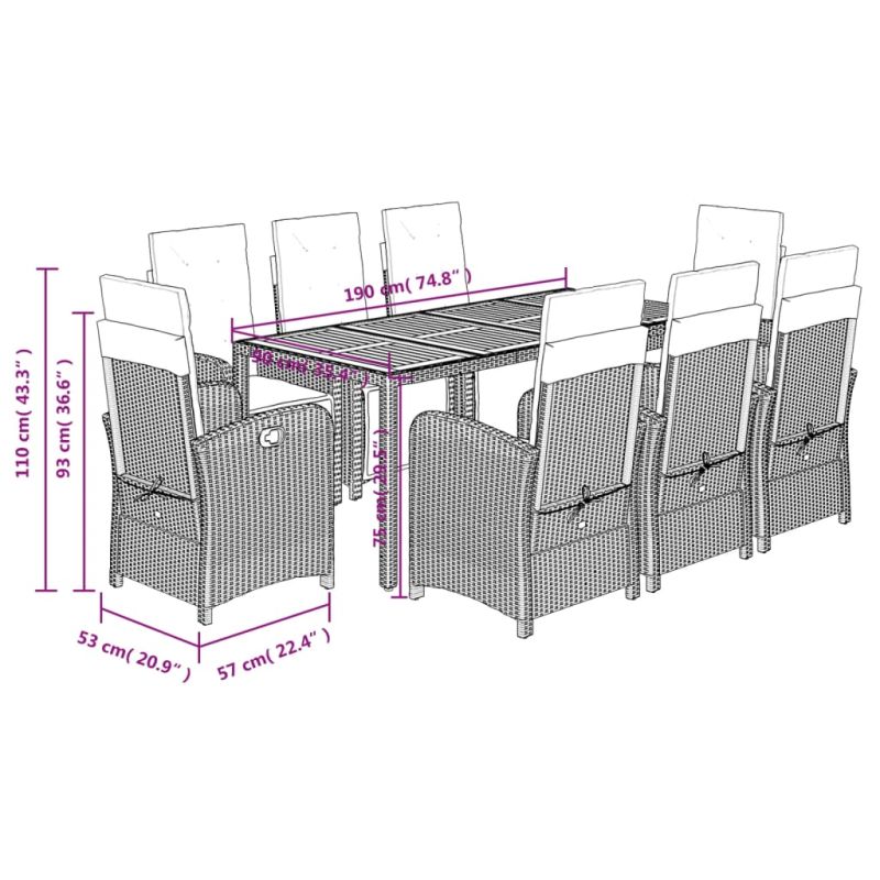Градински трапезен комплект възглавници 9 части черен полиратан