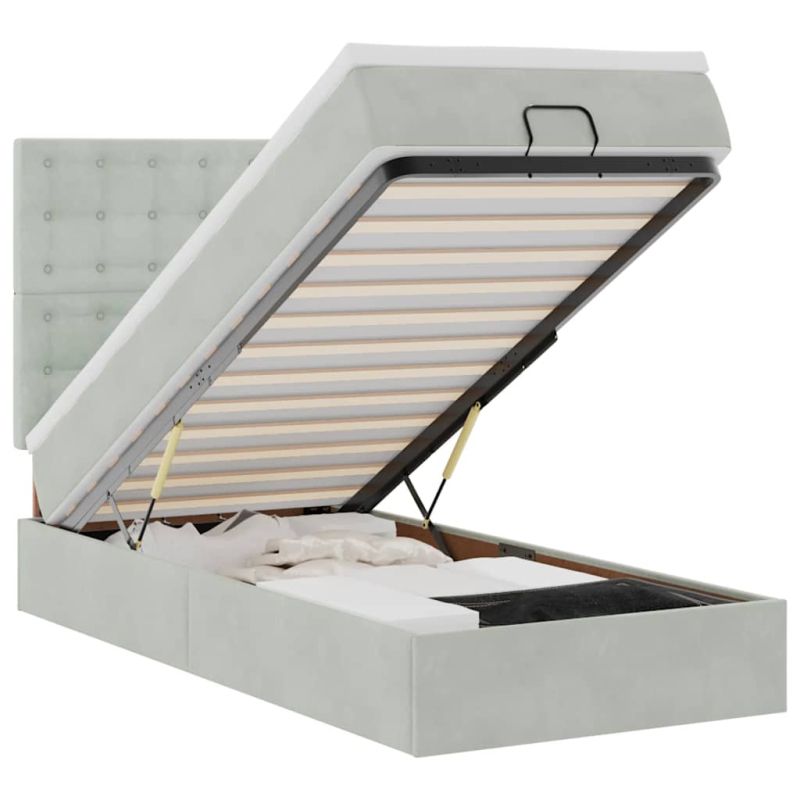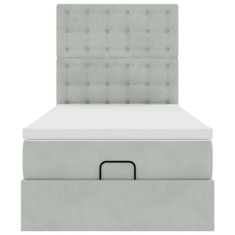 Начало Мебели Легла и аксесоари Легла и рамки за легла Османска легло с матраци, светлосиво, 90x200 см, кадифе