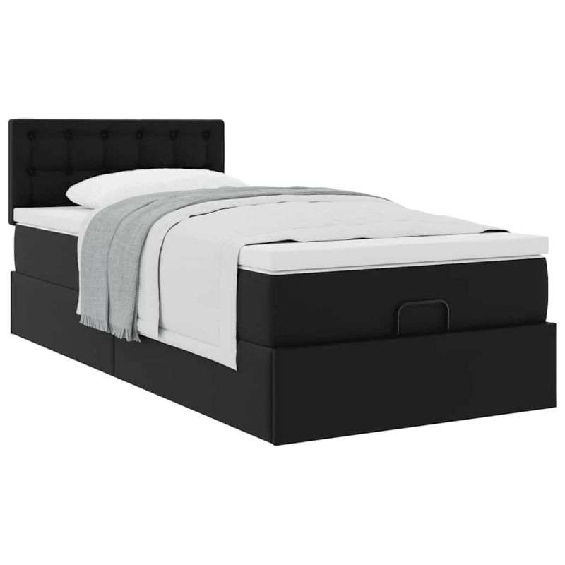 Османска легло с матрак, черно, 100x200 см, изкуствена кожа