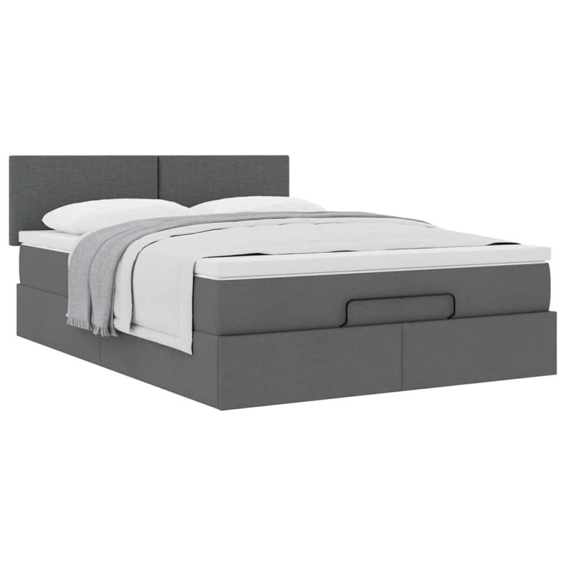 Османска легло с матрак, тъмносиво, 140x200 см, плат