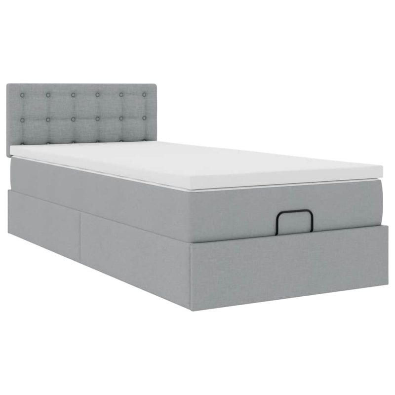 Османска легло с матрак, светлосиво, 90x190 см, плат